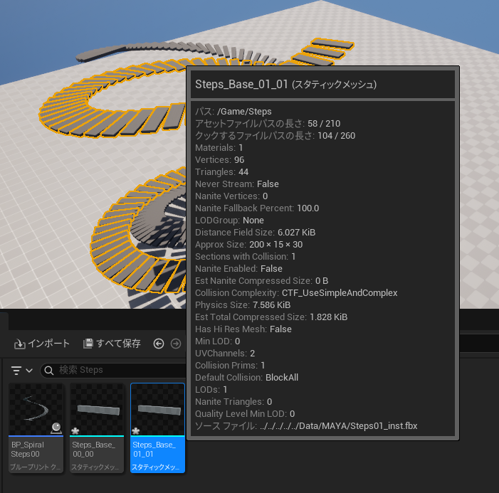 1つのスタティックメッシュで2種類の螺旋階段ができる